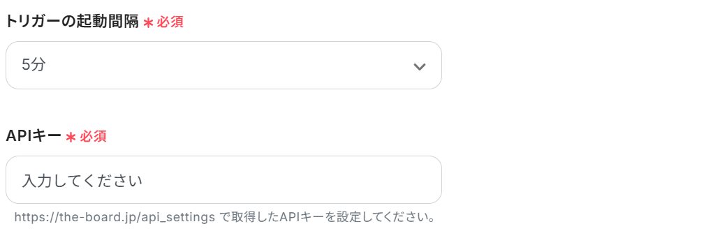 こちらは、boardの顧客が作成されたら、何分後にこのトリガーを起動させるかという設定になります。