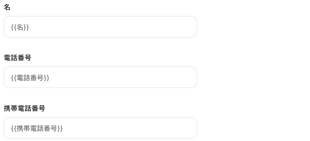 ※アウトプットから選択した項目は{{〇〇}}のように表示されます。