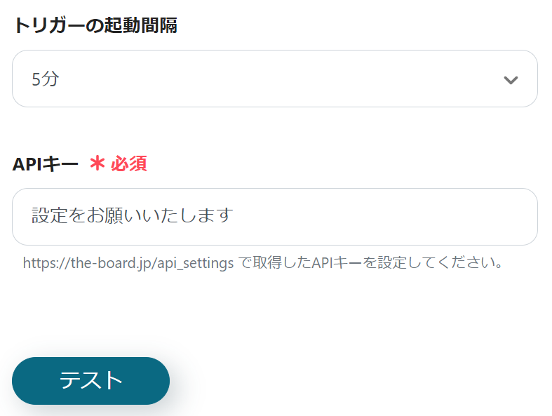最初にboardの設定から行うので、「新しい案件が登録されたら」をクリックしてください。
