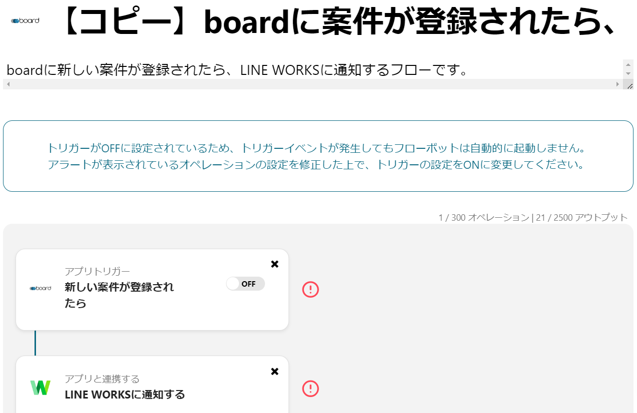 本記事では「boardに案件が登録されたら、LINE WORKSに通知する」フローをご紹介します。