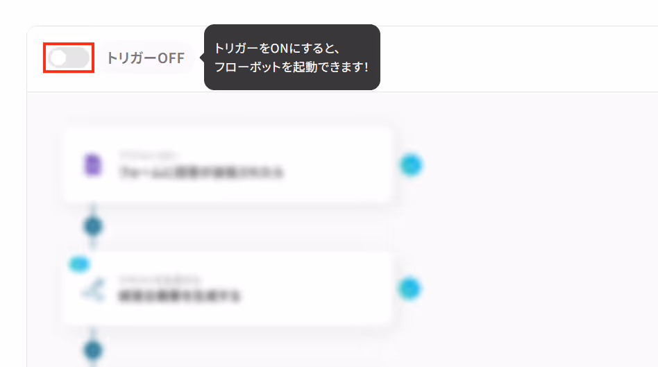 あとで稼働させる場合は、フロー画面のトリガースイッチをクリックしてください。