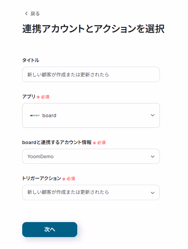A:boardのトリガーは顧客作成・更新と案件登録・更新に対応しており、それぞれをBubbleのThingに反映させることができます。