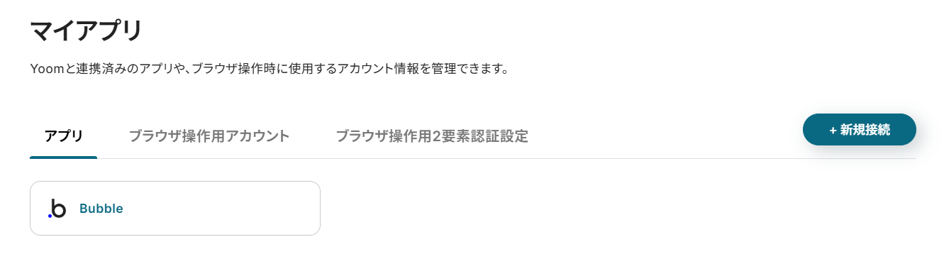 Yoomとそれぞれのアプリを連携して、アプリごとの操作を行えるようにしましょう。この設定は初回のみ必要です。