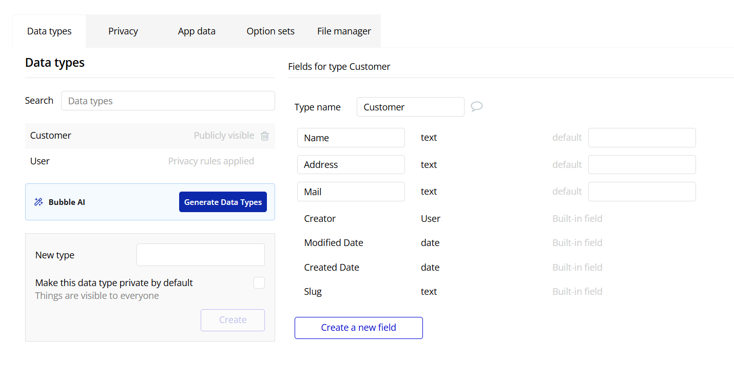ヘルプページ:Bubbleのマイアプリ登録方法とデータタイプ名設定時の注意点