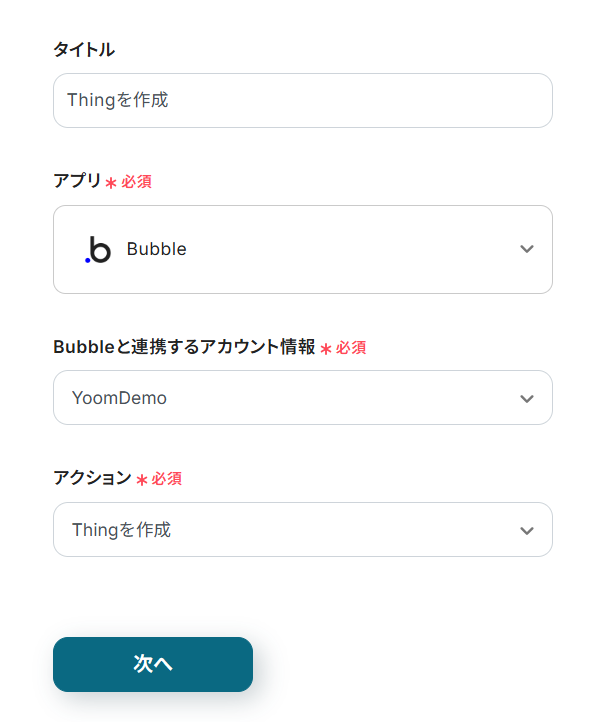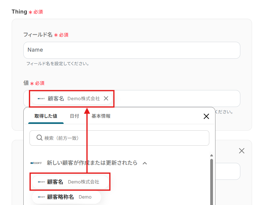 では、boardから取得した顧客情報を用いてBubbleにThingを作成しましょう。
