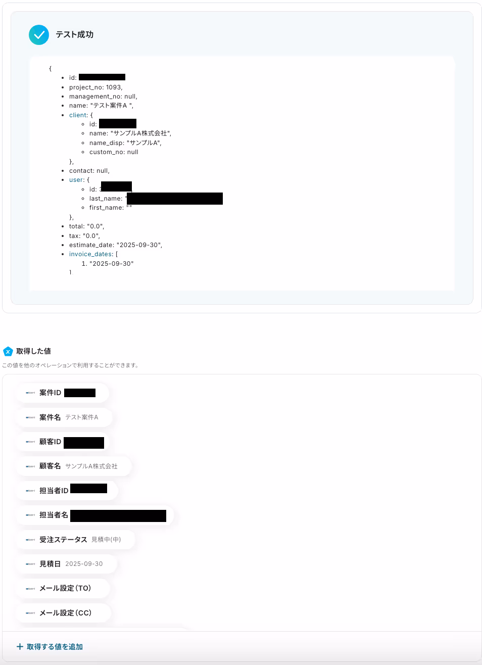 テストに成功すると取得した値が表示されるので、問題がないか確認をしてください。なお、この取得した値の内容をTodoistのタスクとして活用可能です。