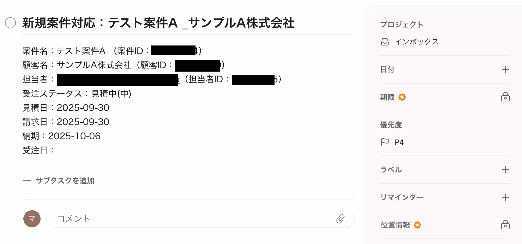 「案件が登録されるたびに、手作業でTodoistにタスクを転記するのが手間で、入力ミスも起きてしまう…」