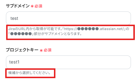 4.「サブドメイン」と「プロジェクトキー」は注釈を参考に入力しましょう。