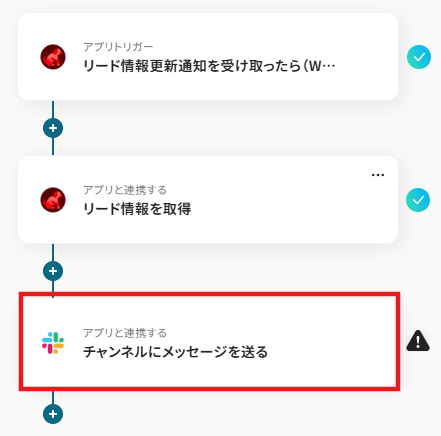 BowNowでリード更新情報通知を受け取ったら、Chatworkに連携してメッセージを送付するフローです。