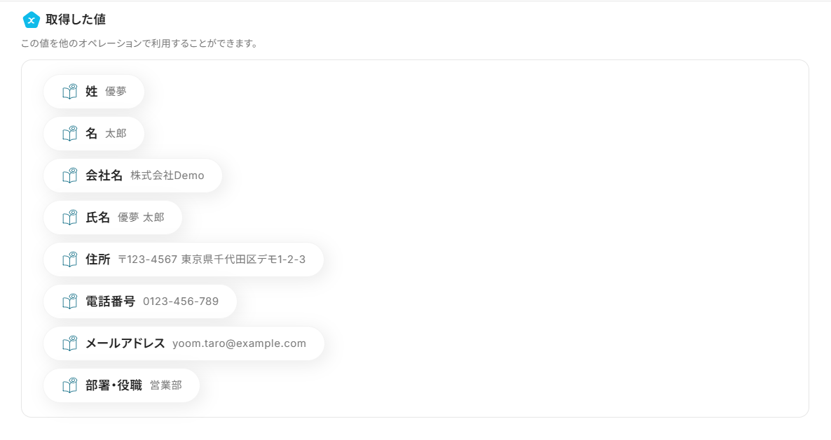 - 各項目に名刺PDFから抽出したデータを設定していきましょう。