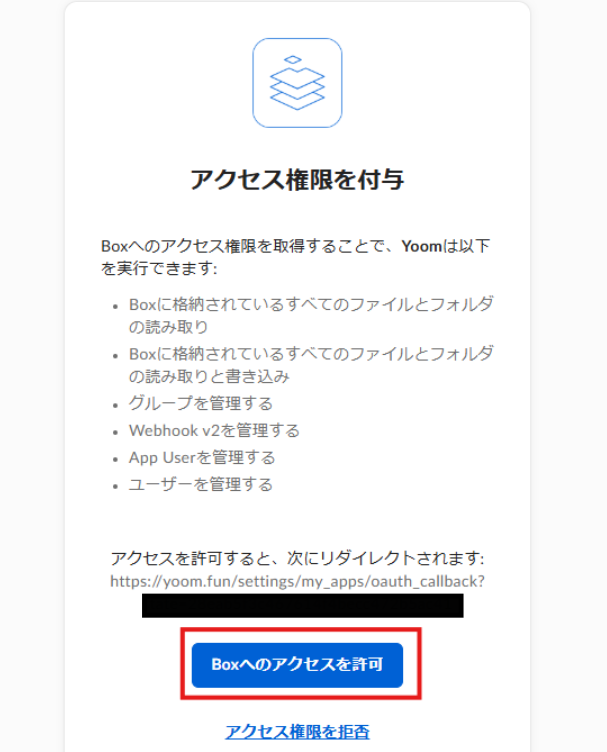 次の画面で「Boxへのアクセスを許可」を押して、連携完了です!