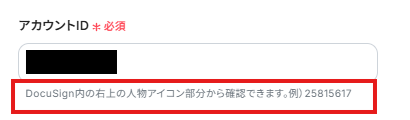 「アカウントID」は入力欄下の説明に従って、入力してください。