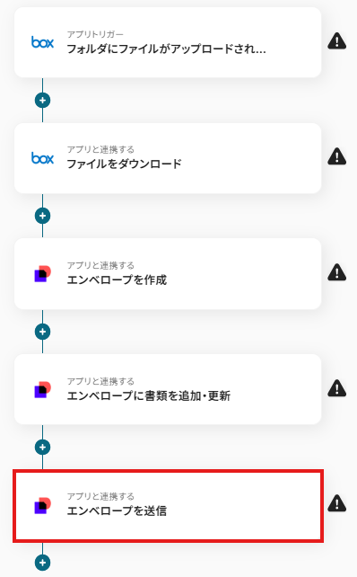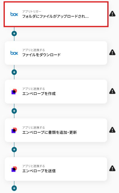 - Boxのトリガー設定とDocuSignのオペレーション設定