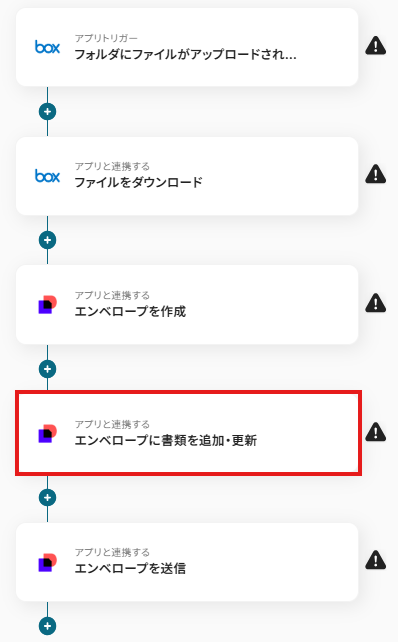 BoxとDocuSignを併用しており、文書の署名プロセスを効率化したい場合などにおすすめのフローです。