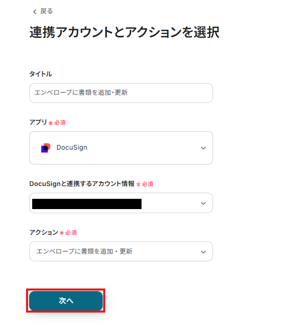 1.アプリと連携する「エンベロープに書類を追加・更新」をクリックしてください。