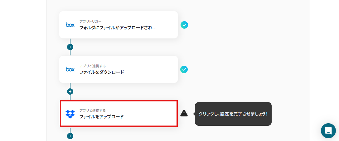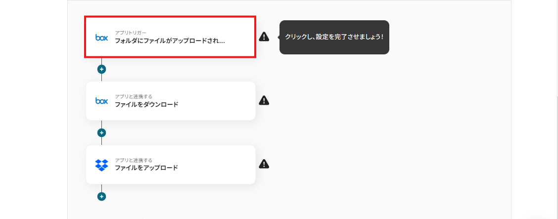 このワークフローを活用すれば、Boxの特定フォルダにファイルがアップロードされるだけで、自動的にDropboxへファイルが転送されるため、こうした課題をスムーズに解消できます。