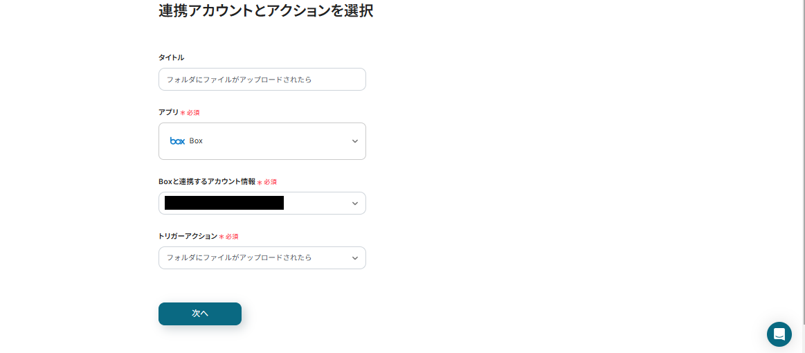ステップ3:Boxでフォルダにファイルがアップロードされたら起動するトリガーの設定