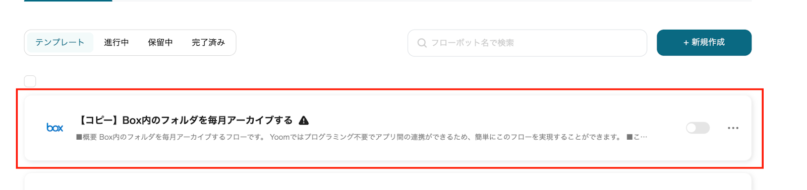 それでは、さっそく「Box内のフォルダを毎月アーカイブする」のテンプレートを使ったフローボットを作成していきましょう。