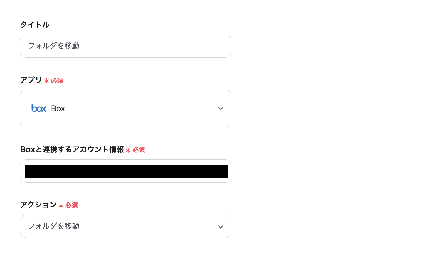 (1)Boxの特定フォルダを移動するまでの設定が完了したら、以下赤枠をクリックします。