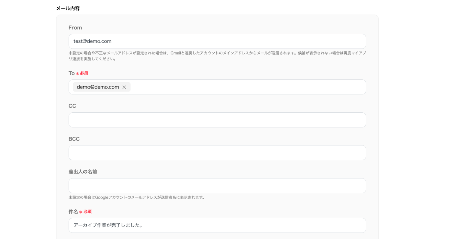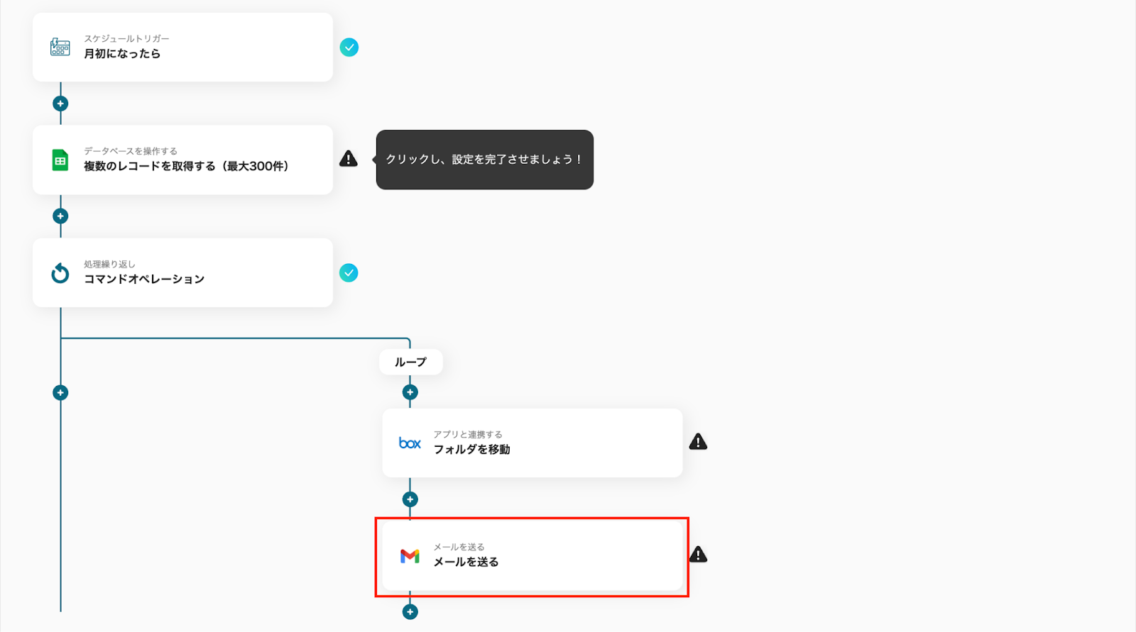 コピーが完了したら、ステップ4のBoxの特定フォルダを移動するまでは同じステップになるので、そのあとのメールを送るGmailの設定から説明していきます。