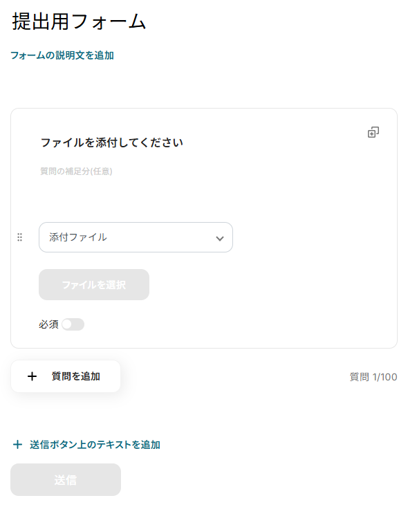 フォームにファイルが送信されたらフローボットが起動する設定を行うため、「提出用フォーム」をクリックします。