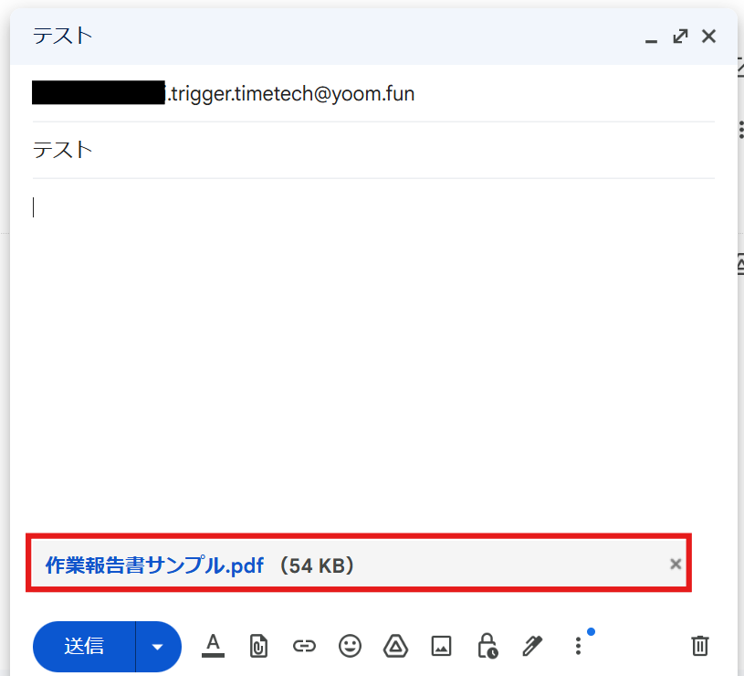 テスト用にファイルを添付したメールを受信用アドレス宛に送信してください。
