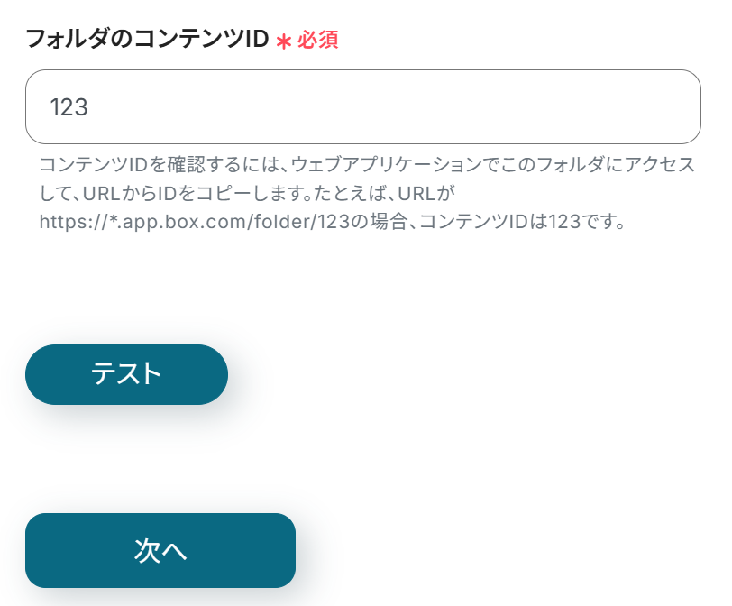 以下の画面が表示されたら、「フォルダのコンテンツID」を設定しましょう。