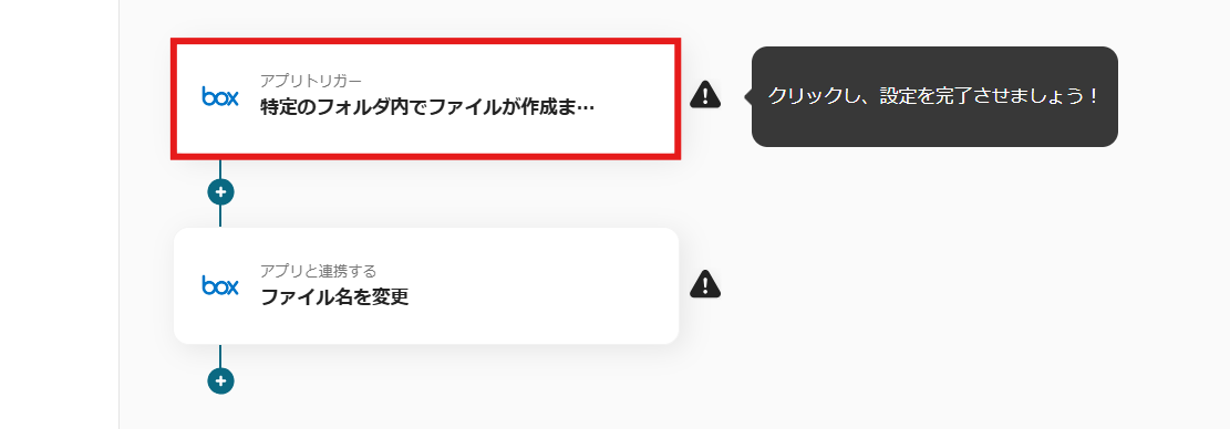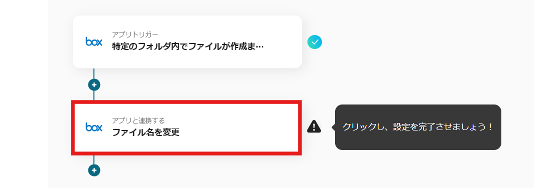 4.これで、【Boxでファイルがアップロードされたらファイル名を変更する】というフローが完成しました。