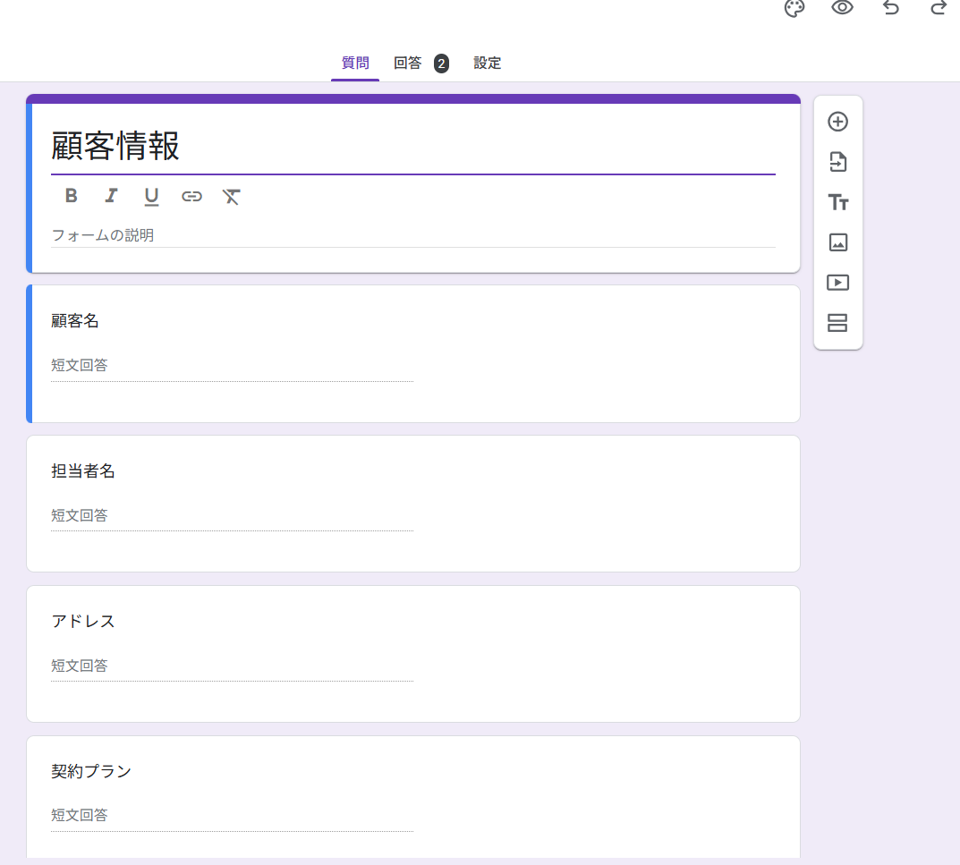 このフローではGoogle フォームの回答内容からBoxにフォルダを作成するため、あらかじめフォームの作成が必要です。