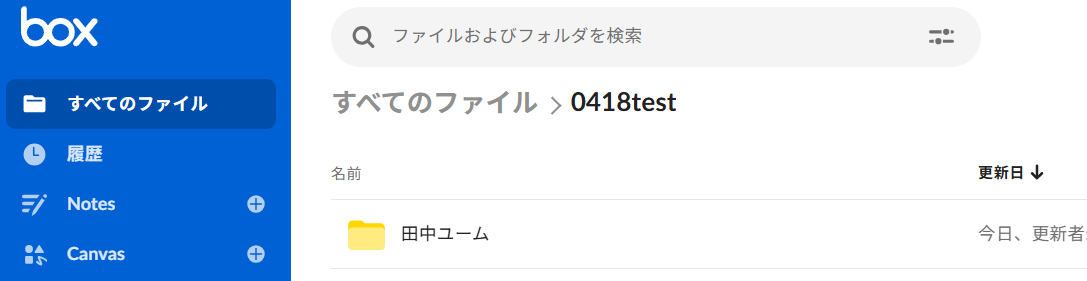 ※テストすると実際にBoxにフォルダ作成されるので注意してください。