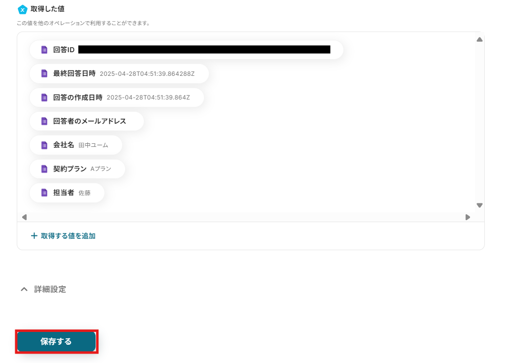 ・Googleフォームをトリガーとして使用した際の回答内容を取得する方法は下記を参照ください。