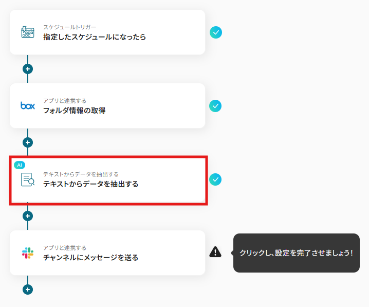 1) フローに戻り、「テキストからデータを抽出する」のアイコンをクリックします。