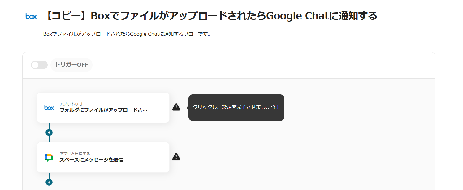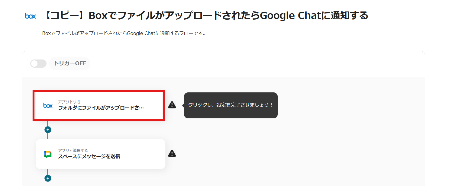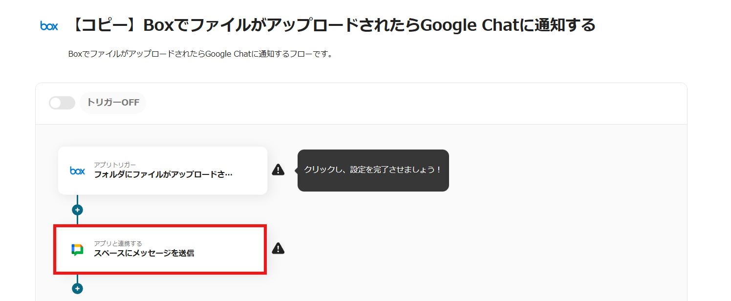 ・トリガーボタンをONにして、BoxとGoogle Chatの連携動作を確認