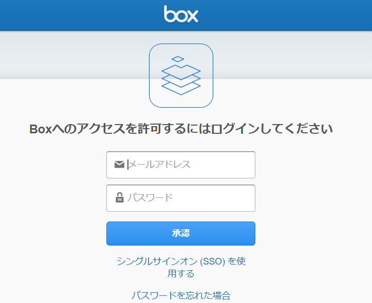 以下の画面に移行するので、「ログイン」→「Boxへのアクセスを許可」をクリックします。