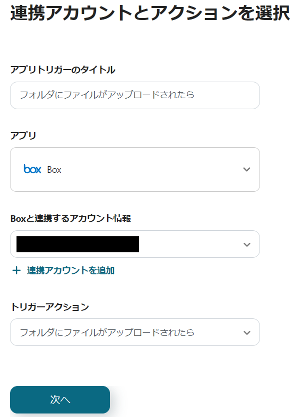 - 「Boxと連携するアカウント情報」→使用しているアカウントどうか確認