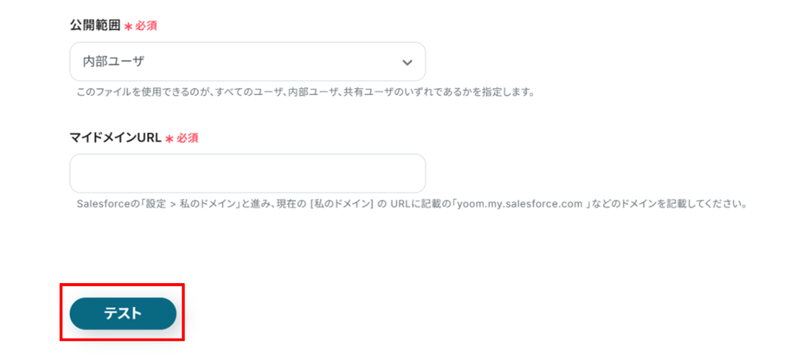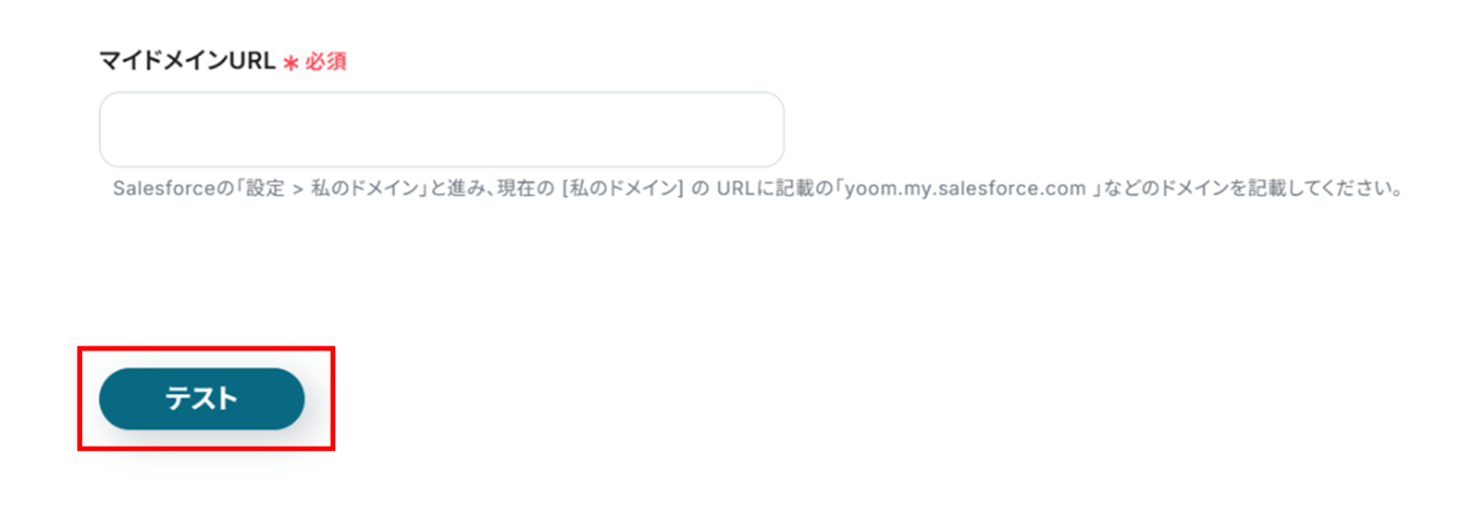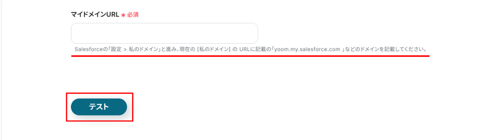 下へ進み、マイドメインURLを入力し、「テスト」をクリックします。