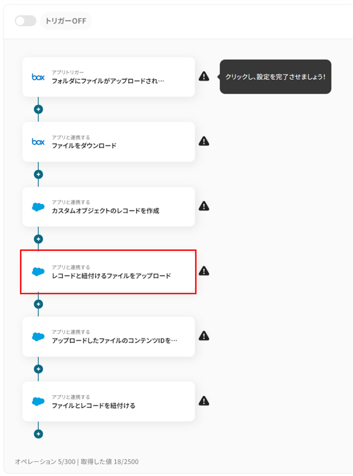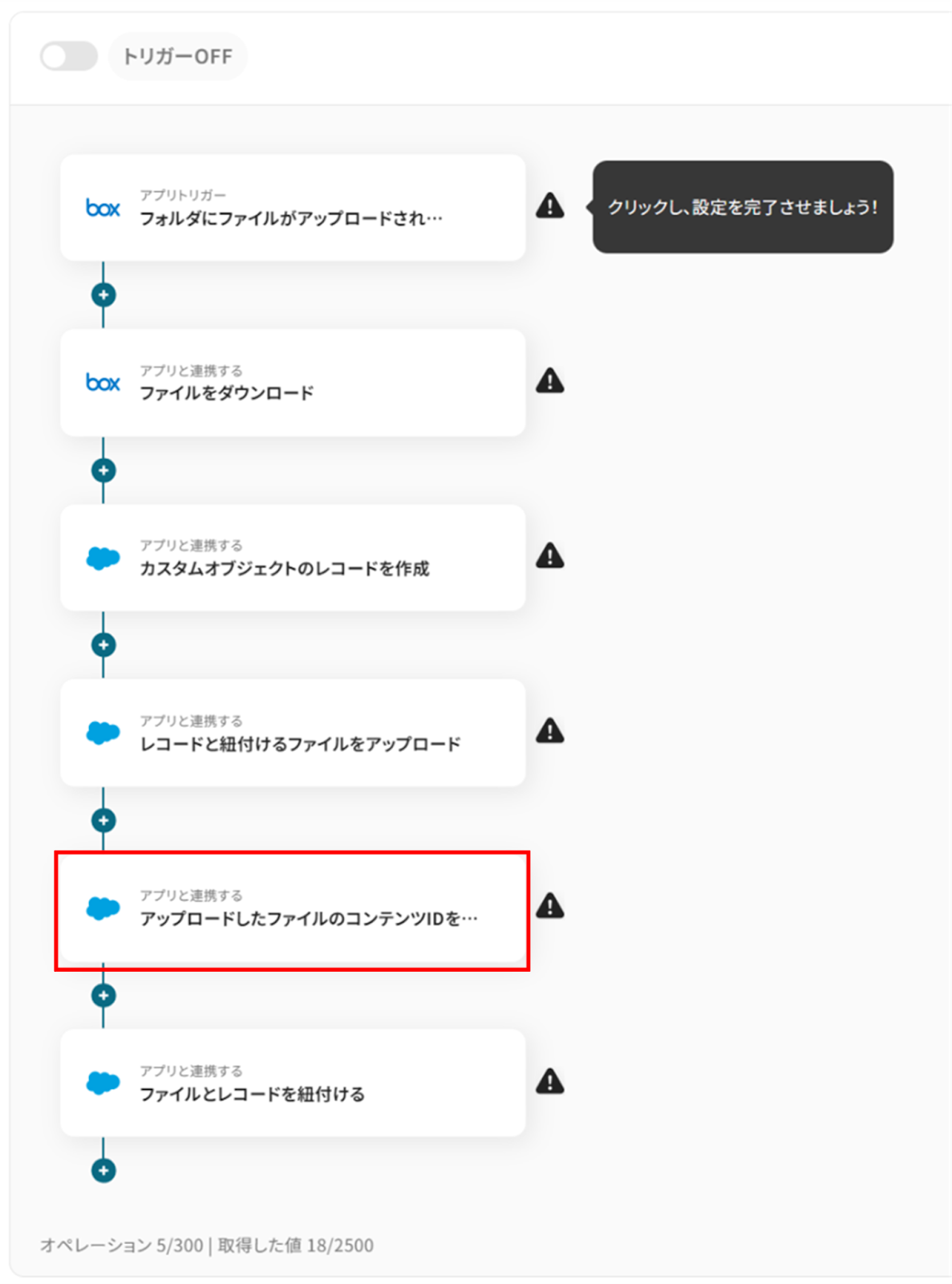 「Boxでフォルダにファイルがアップロードされたら、Salesforceのレコードに自動登録する」フローは、BoxとSalesforceの連携を活用した業務ワークフローです。