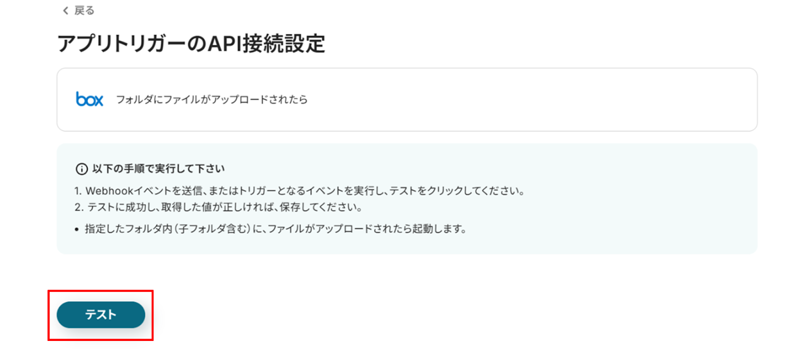 (1)Boxのフォルダにファイルがアップロードされた際の設定をします。
