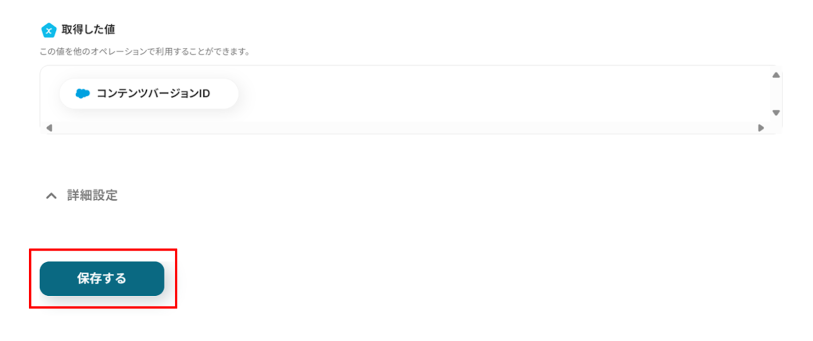 テストに成功すると、「コンテンツバージョンID」の情報を取得します。