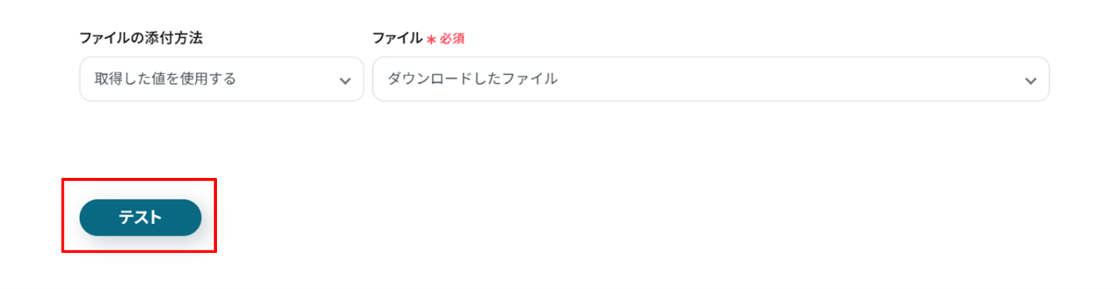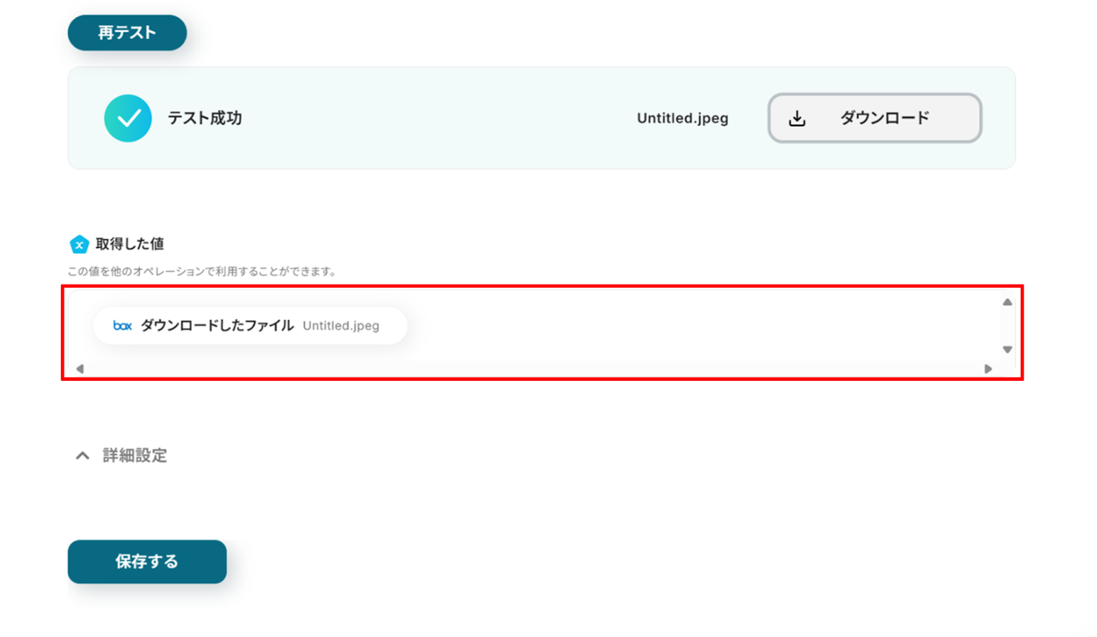 (4)テストが成功すると、「ダウンロードしたファイル」が取得した値に追加されます。