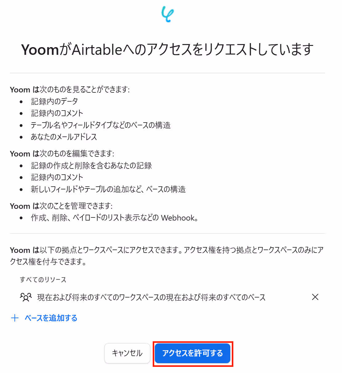 Yoomの設定テスト用にAirtableのテーブルを準備します。