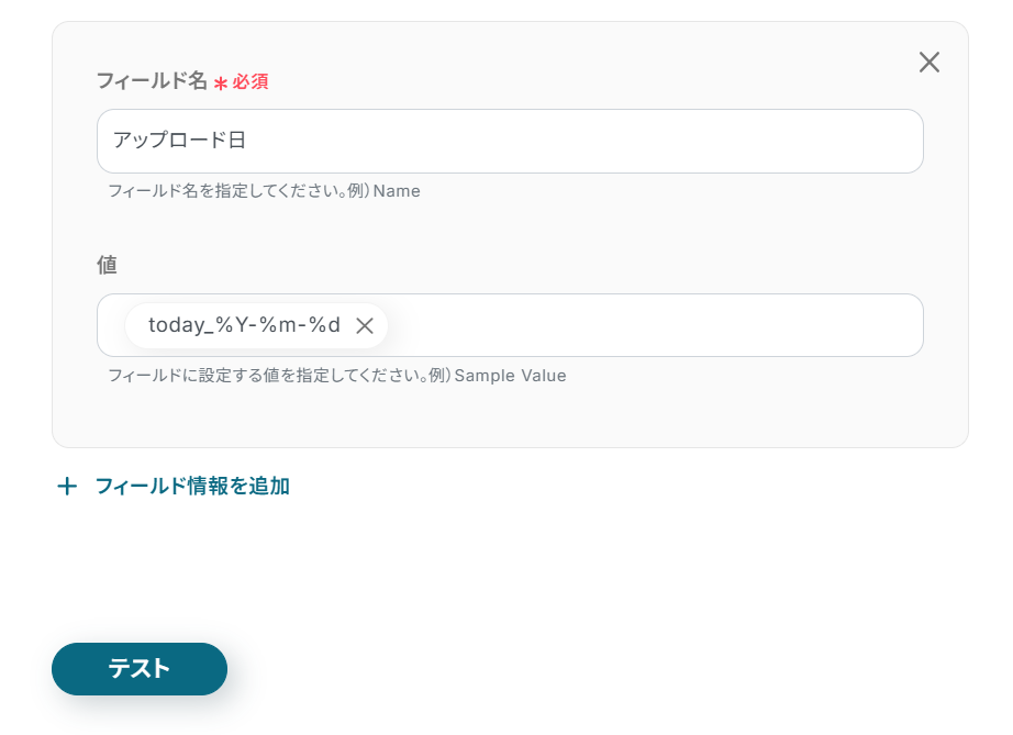 - フィールド名:Airtableの各フィールド名を入力してください