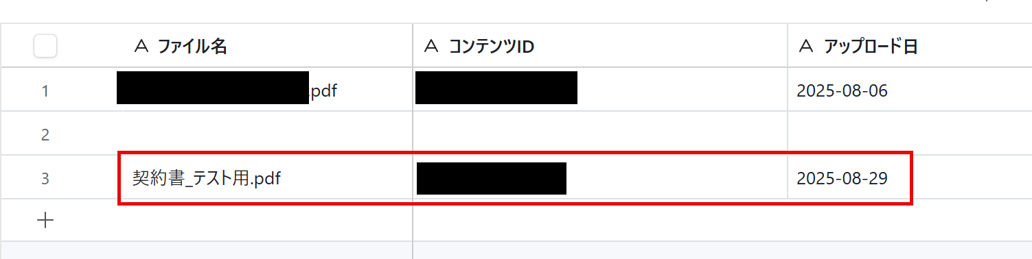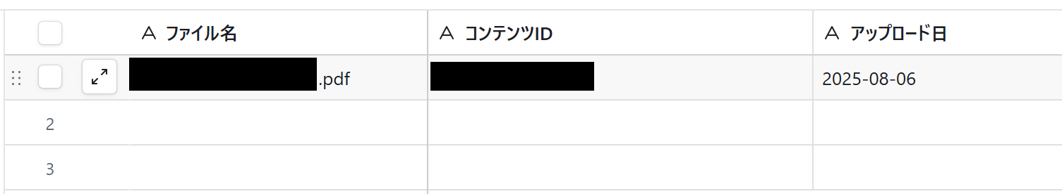 BoxにファイルがアップロードされたらこのAirtableにレコードが追加される流れです。