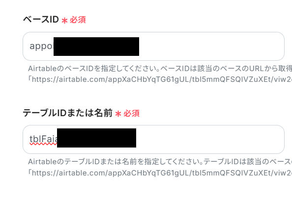 ベースIDとテーブルIDを注釈に従って入力します。