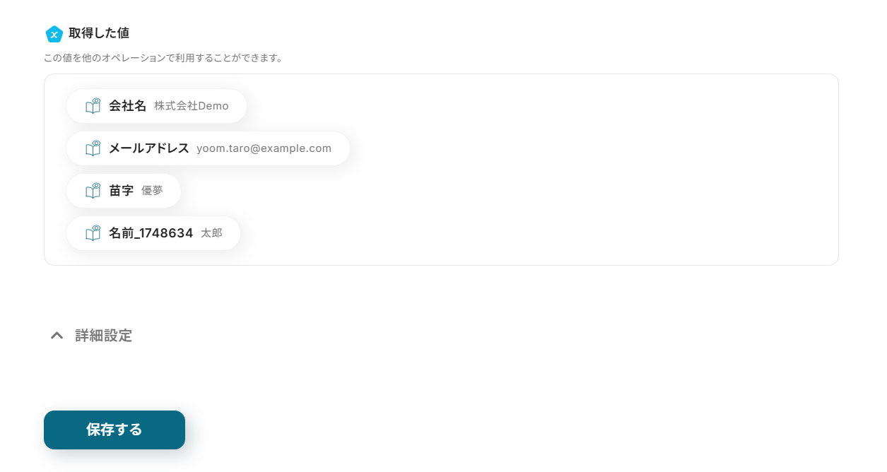 これらの値は、以降のアクションで動的な値(フローが稼働する度に変わる値)として使用できるようになります。