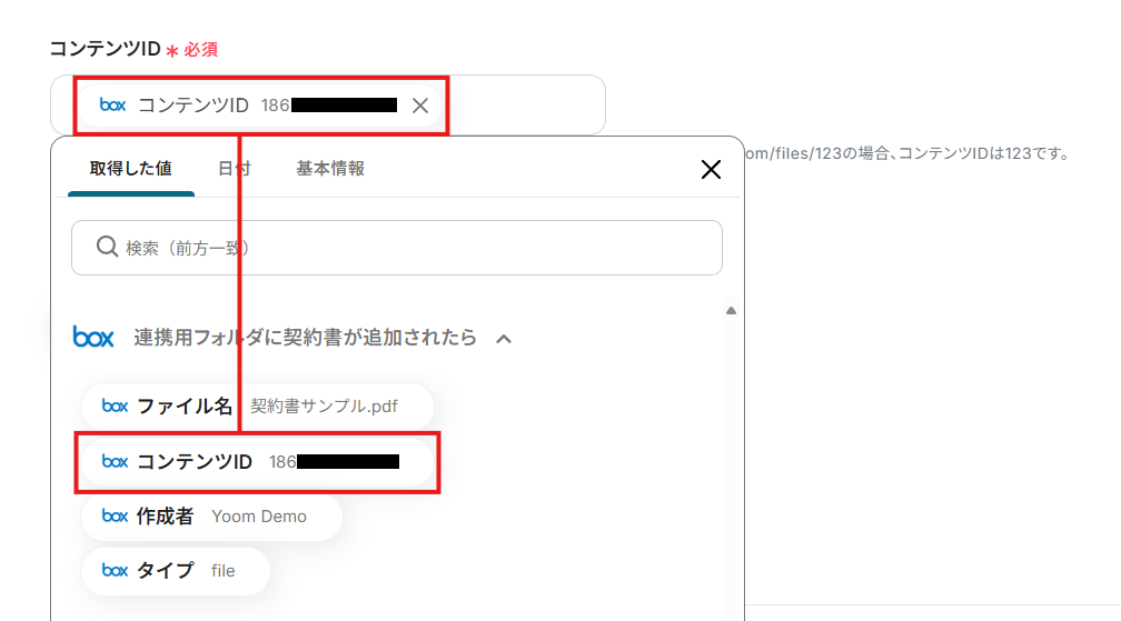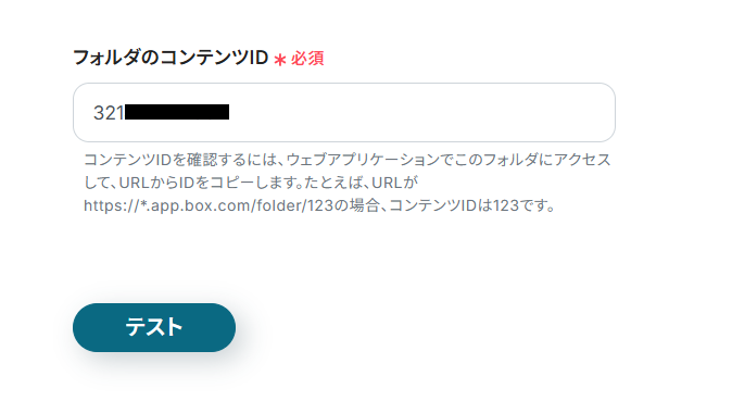 コンテンツIDはBoxの対象フォルダURL(folder/コンテンツID/)で確認できます。