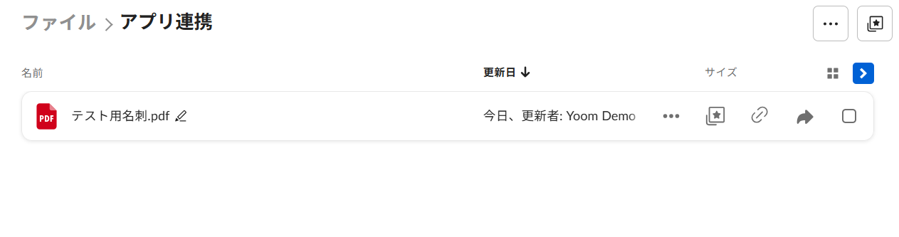 - Boxの指定したフォルダに、テスト用のファイル(名刺のPDFファイルなど)をアップロードしてください。