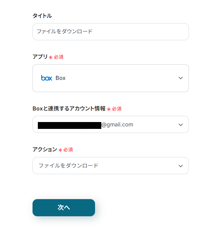 ・Gmail、Googleドキュメント、BoxのそれぞれとYoomを連携してください。