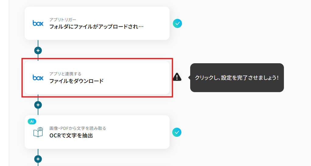 - Boxの「フォルダにファイルがアップロードされたら」をクリック。