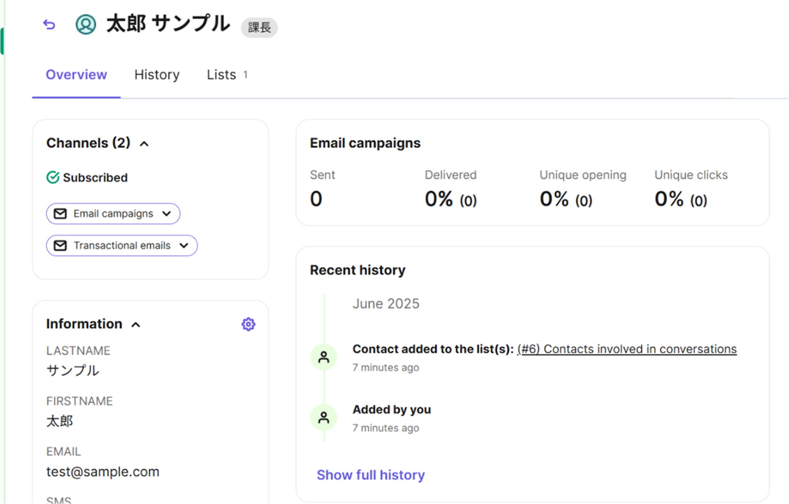 テストをする前に、Brevoでテスト用にコンタクトを作成しましょう!